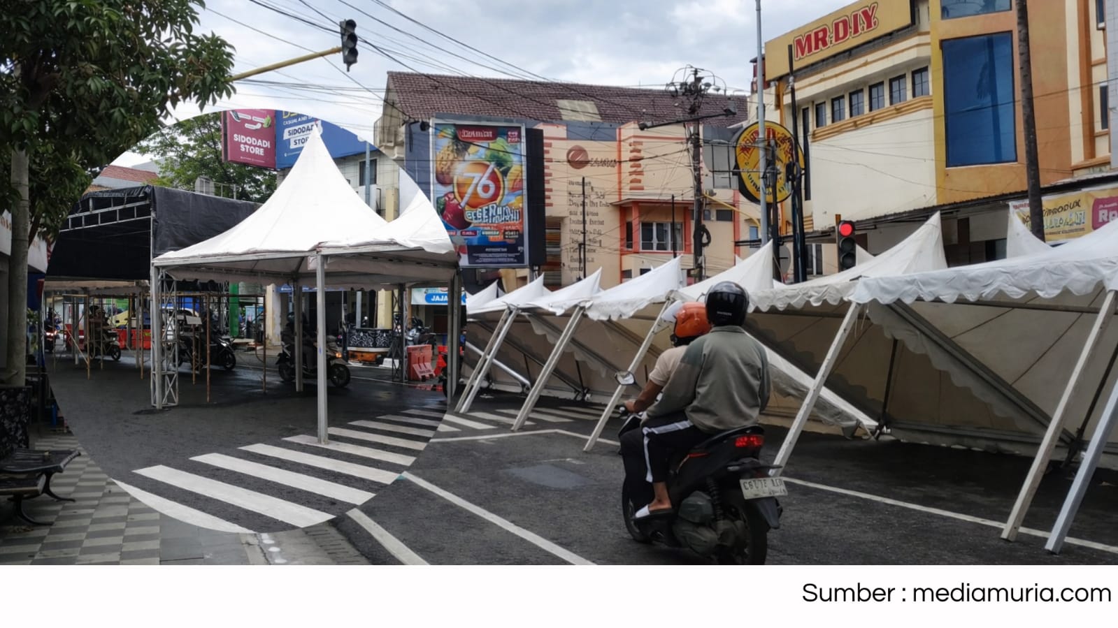 H-1 Dandangan Kudus, Ratusan Tenda Pedagang Mulai Ditata di Jalan Sunan Muria