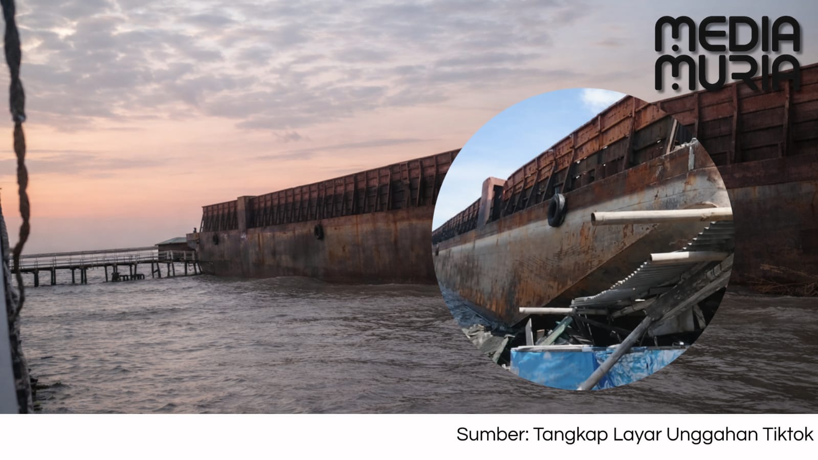 Viral di Media Sosial, Kapal Tongkang Terdampar di Pesisir Sayung Demak Picu Kepanikan Warga