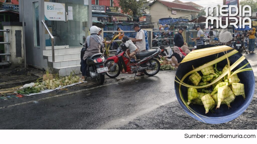 Jelang Lebaran Kupatan, Pasar Brayung Kudus Dipadati Penjual Janur dan Kupat