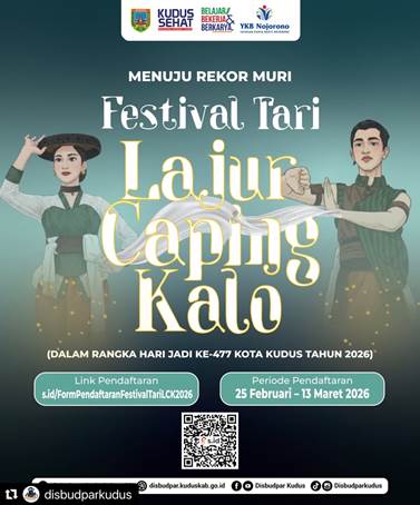 mediamuria.com, KUDUS – Pemerintah Kabupaten Kudus melalui Dinas Kebudayaan dan Pariwisata Kabupaten Kudus kembali menghadirkan ruang partisipasi budaya yang terbuka bagi masyarakat luas. Dalam rangka memperingati Hari Jadi ke-477 Kota Kudus tahun 2026, Festival Tari Lajur Caping Kalo resmi digelar dengan target ambisius: mencatatkan sejarah melalui Rekor Museum Rekor-Dunia Indonesia (MURI).