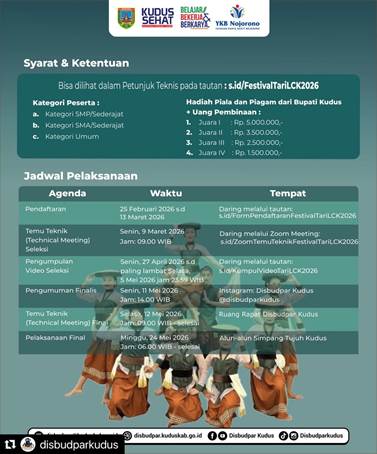 Kini saatnya masyarakat Kudus mengambil peran. Bukan sekadar menonton, tetapi turut hadir, berpartisipasi, dan menjadi bagian dari sejarah menuju Rekor MURI. Dari Kudus untuk Indonesia, budaya lokal kembali bersuara, mengajak semua untuk bangga dan terlibat.