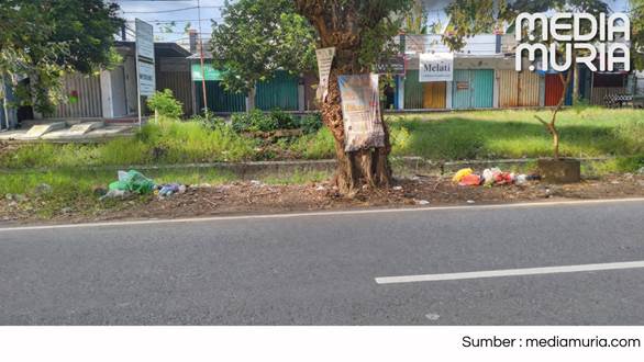 Jika menelusuri aliran sungai ke arah timur, kondisi yang ditemukan justru lebih memprihatinkan. Di beberapa titik, terutama di sekitar depan SMK PGRI Kudus, terlihat banyak sampah dalam kantong plastik yang dibuang di pinggir sungai.