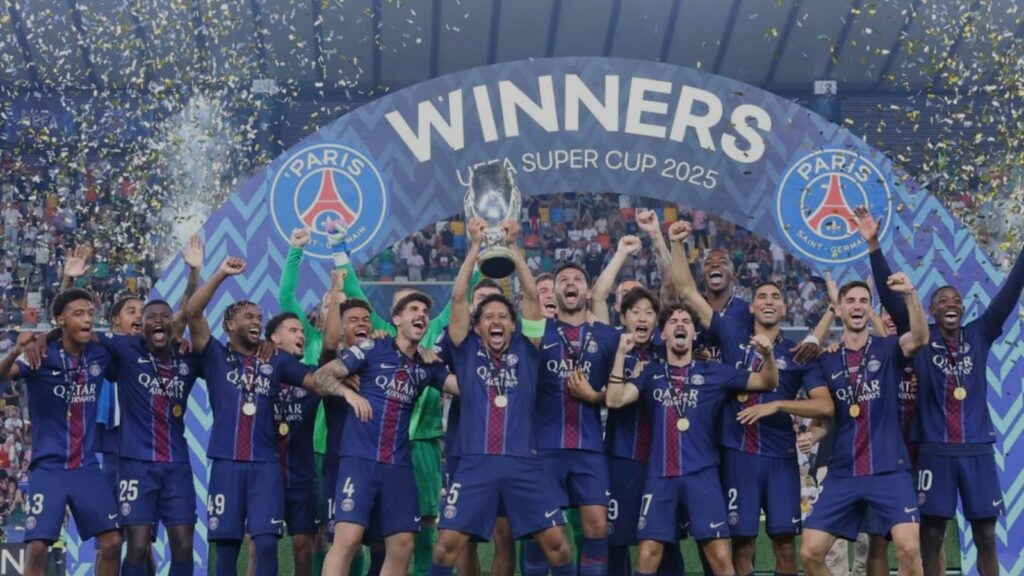 mediamuria.com – Pertandingan Piala UEFA Super Cup mempertemukan antara Paris Saint-Germain juara Liga Champions melawan Tottenham Hotspur juara Liga Europa. Pertandingan yang berlangsung di Bluenergy Stadium, Italia berlangsung pada Kamis, 14 Agustus 2025 dini hari.