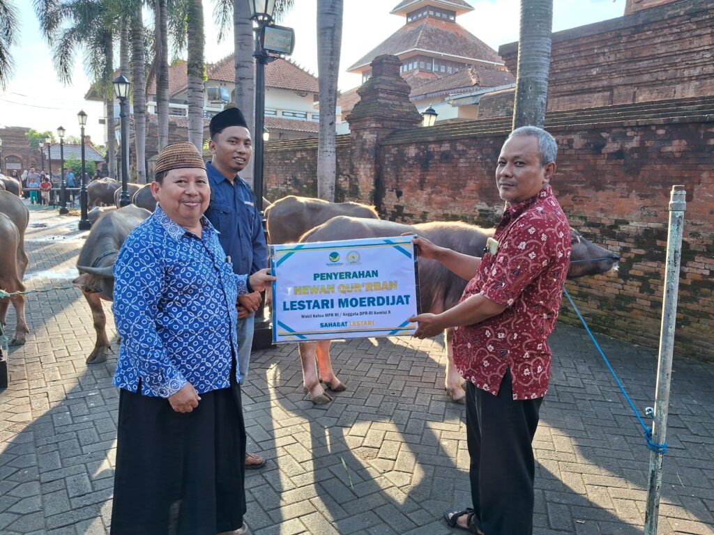 Dalam rangka merayakan Hari Raya Idul Adha, Lestari Moerdijat, Ketua MPR RI sekaligus anggota DPR RI dari Fraksi Partai NasDem, melalui DPD Partai NasDem Kabupaten Kudus, Demak dan tim Sahabat Lestari menyerahkan hewan qurban.