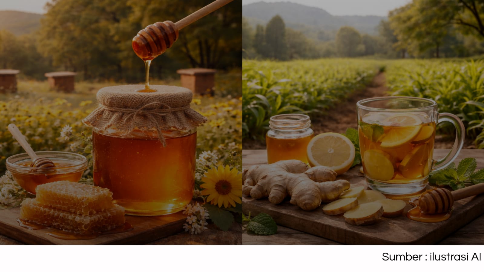 Madu sering dikombinasikan dengan jahe atau lemon sebagai minuman hangat yang dikonsumsi untuk menjaga kebugaran harian.